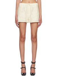 Cotton-blend guipure lace shorts. Jacquard graphic pattern throughout. · Drawstring at elasticized waistband · Four-pocket styling · Vented outseams · Full plain-woven lining Supplier color: Avorio Body: 77% cotton, 23% polyamide. Lining: 100% cotton. Made in Italy 231476F088004