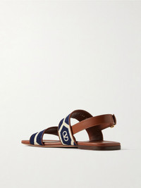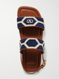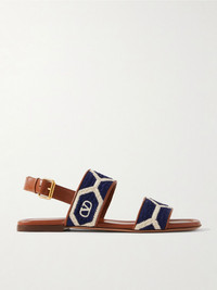 Valentino Garavani's sandals are crafted from leather and embroidered with a geometric pattern and 'VLogo'. They fasten with adjustable slingback straps and have slight heels. Size & Fit - Fits true to size, take your normal size - Italian sizing Details & Care - Slight heel - Brown leather (Calf) - Buckle-fastening slingback strap