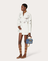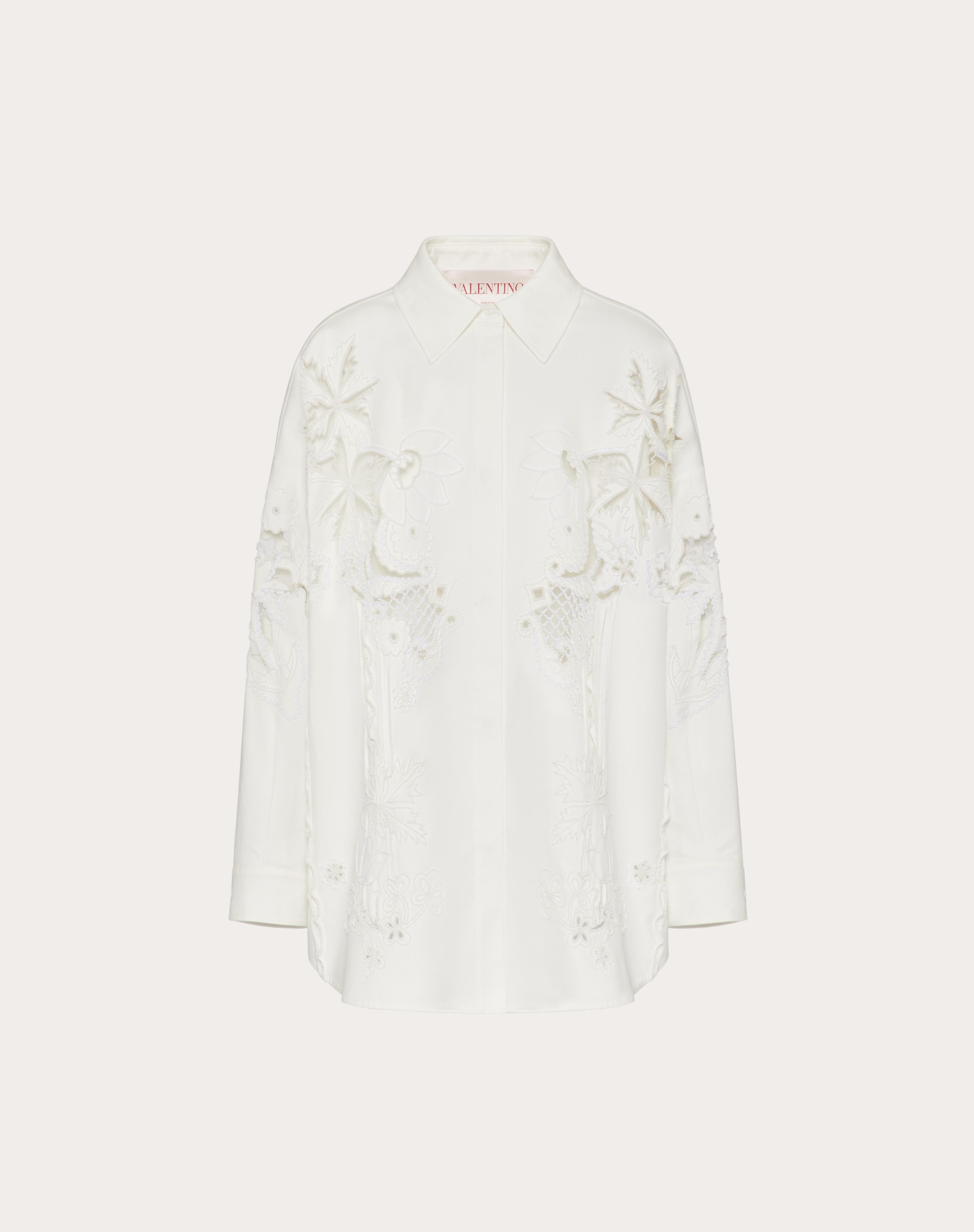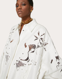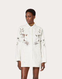 Overshirt in embroidered Light Double Splittable Gabardine. - Embroidery featuring micro-elements and beads - Light Double Splittable Gabardine (99% Cotton, 1% Polyamide) - Unlined - Length from shoulders: 78 cm / 30.7 in. for Italian size 40 - Sleeve length: 84 cm / 33 in. from center back for Italian size 40 - The model is 176 cm / 5’9” tall and is wearing an Italian size 40 - Made in Italy Product Code BCIFR175Y_0BO