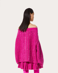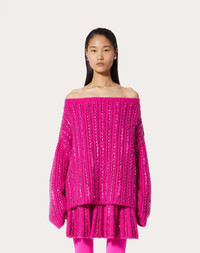 Women's embroidered mohair wool sweater - All-over micro elements embroidery - Oversize fit - Bardot neckline - Mohair Wool (66% Mohair Wool; 30% Polyamide; 4% Wool ) - Unlined - Length from shoulders: 63 cm / 24.8 in. in an Italian size S - Sleeve length: 78 cm / 30.7 in. from center back in an Italian size S - The model is 176 cm / 5'9" tall and wears an Italian size S - Made in Italy Product code: BKC39Q7HH_UWT