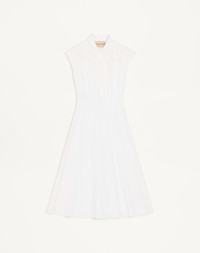 Midi dress in poplin with Sangallo embroidery - Front closure with mother-of-pearl V Logo buttons - Side zipper - Classic Poplin (100% Cotton) - Muslin lining (100% Cotton) - Length: 120 cm / 47.2 in. from the shoulders in an Italian size 40 - The model is 176 cm / 5'9" tall and wears an Italian size 40 - Made in Italy The look of the model is completed by a Valentino Garavani Laseine Bag and Valentino Garavani Bondie Shoes. Product code: 8B3VAJR59VN_0BO