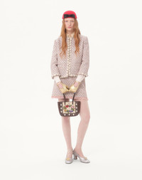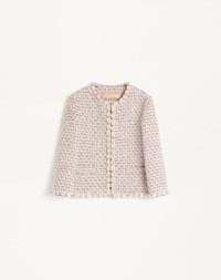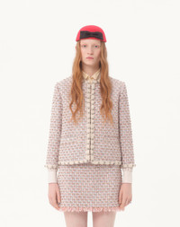 Ribbon Tweed Jacket with embroidered edges and cuffs - Front closure with covered hooks - Pastel Ribbon Tweed (27% Polyamide, 27% Polyester, 22% Cotton, 13% Lycra, 6% Viscose, 5% Acrylic) - Flower, Stripes, and VLogo lining (74% Acetate, 26% Silk) - Length: 53 cm / 20.9 in. from the shoulders in an Italian size 40 - The model is 176 cm / 5'9" tall and wears an Italian size 40 - Made in Italy The look of the model is completed by a Valentino Garavani Nellcote Bag and Valentino Garavani Adamantine Shoes. Product code: 7B3CE3YI9E5_M12