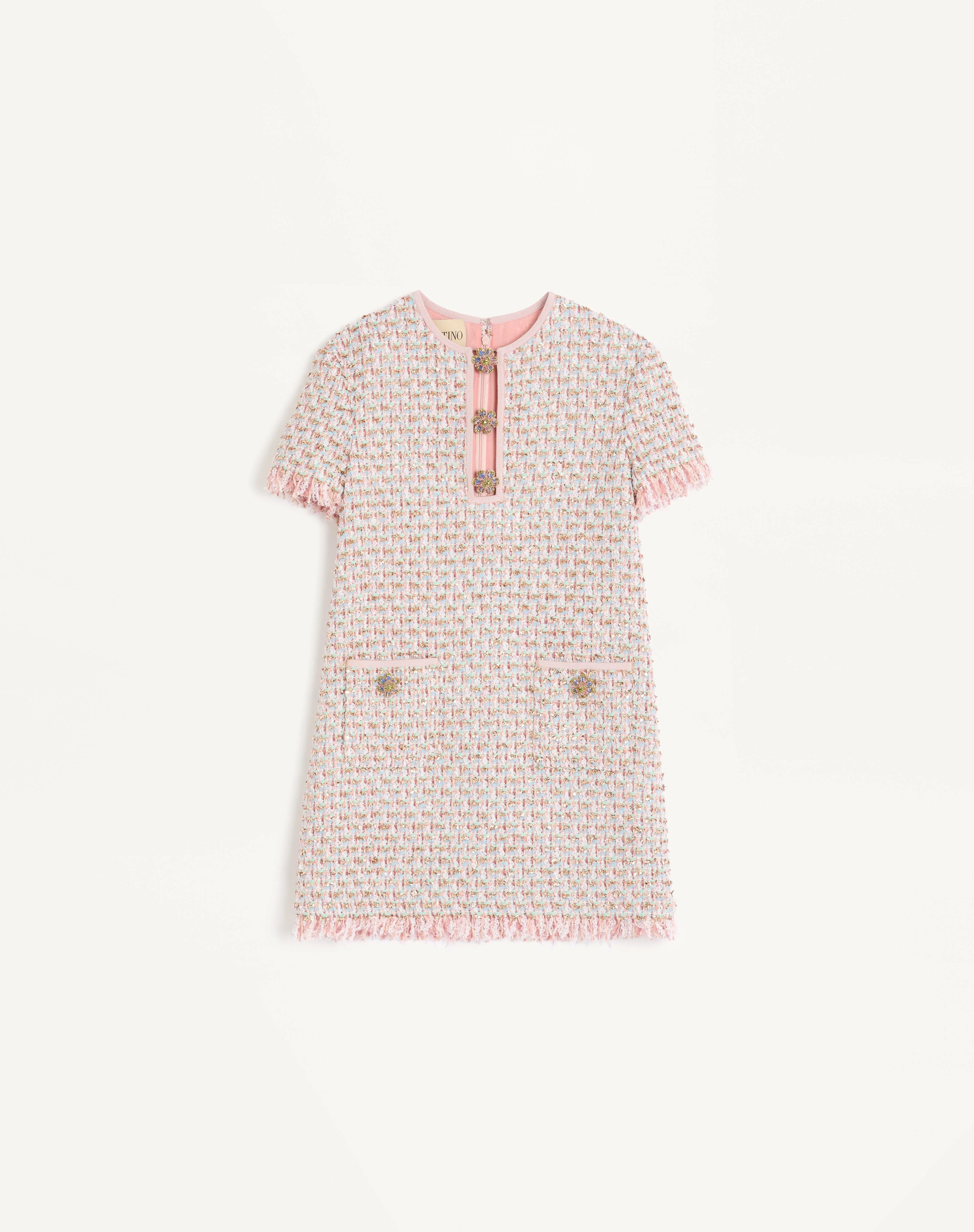 Short dress in Ribbon Tweed with floral embroidery - Pocket detail - Rear zip closure - Pastel Ribbon Tweed (27% Polyamide, 27% Polyester, 22% Cotton, 13% Lycra, 6% Viscose, 5% Acrylic) - Lining with Flower, Stripes, and VLogo (74% Acetate, 26% Silk) - Length: 90 cm / 35.4 in. from the shoulders in an Italian size 40 - The model is 176 cm / 5'9" tall and wears an Italian size 40 - Made in Italy The look of the model is completed by a Valentino Garavani Bag and Valentino Garavani Adamantine Shoes. Product code: 7B3VADW59E5_M12