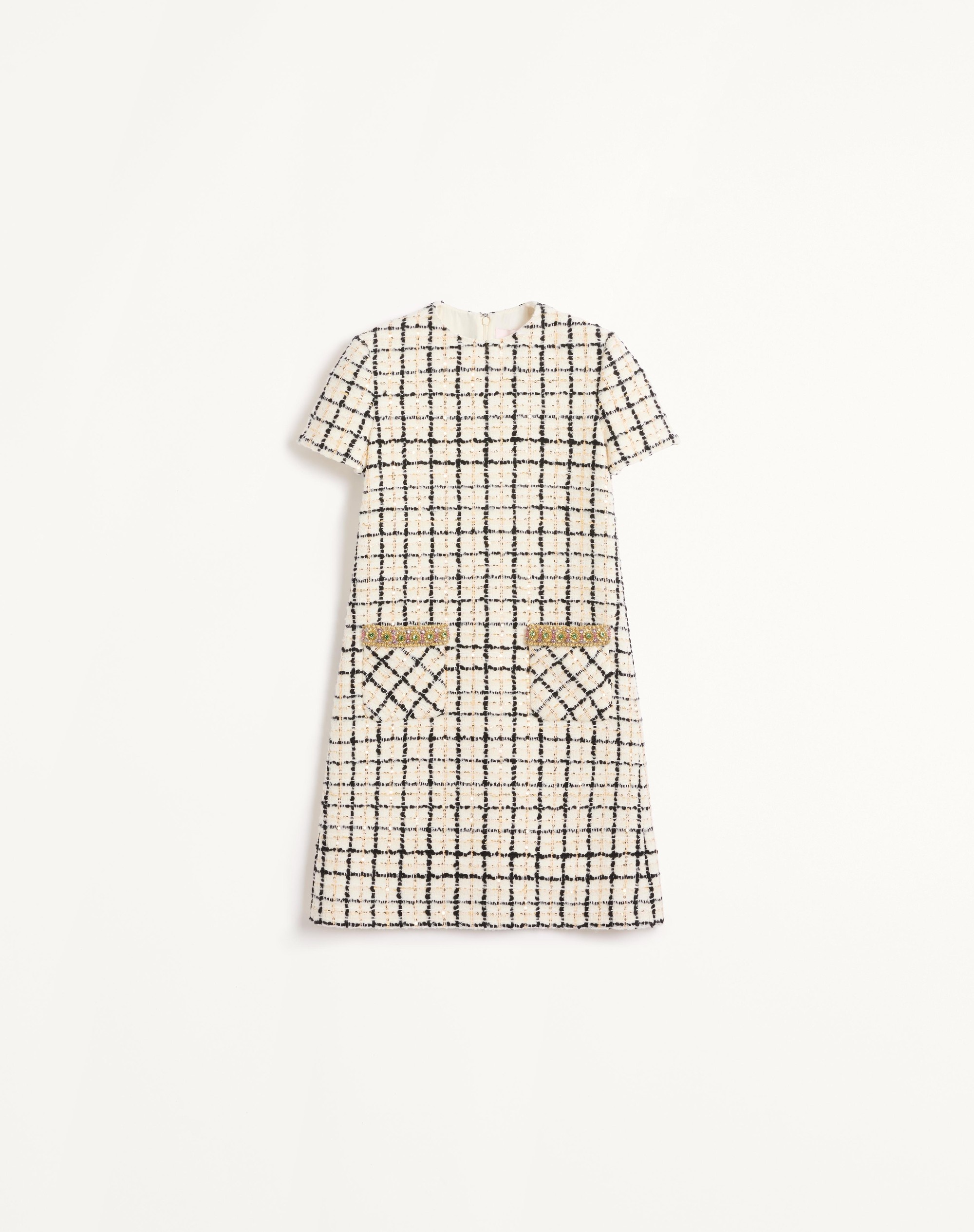 EMBROIDERED SHORT DRESS IN TWEED CHECK PAILETTES