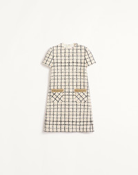 Embroidered Short Dress in Tweed Check Pailettes - Micro-element embroidery on the pockets - Rear closure with zip and hook-and-eye fastening - Tweed Check Pailettes (83% Wool, 10% Polyester, 7% Polyamide) - Length: 90 cm / 35.4 in. from the shoulders in an Italian size 40 - Sleeve length: 40 cm / 15.7 in. from the center back in an Italian size 40 - The model is 176 cm / 5'9" tall and wears an Italian size 40 - Made in Italy The look of the model is completed by a Valentino Garavani Viva Superstar Bag and Valentino Garavani Preshoes Shoes. Product code: 6B3VAER290L_M12
