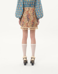 EMBROIDERED SKIRT ON PIQUET WITH PAISLEY VOYAGE IMAGINAIRE PRINT