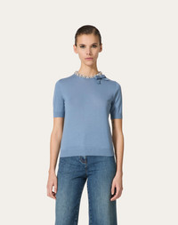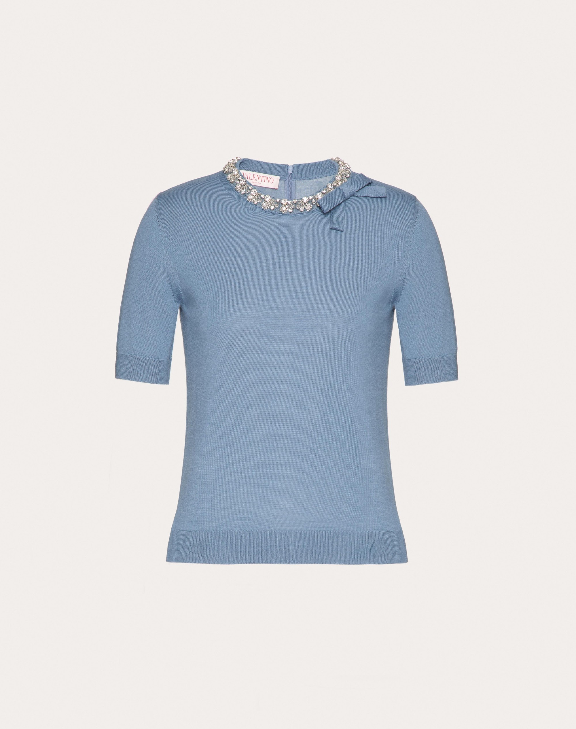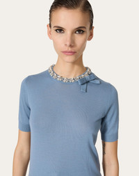Embroidered Wool Sweater - Concealed rear zipper closure - Bow detail - Wool (100% Virgin Wool) Length: 54 cm / 21.3 in. from the shoulders in an Italian size S - Sleeve length: 41 cm / 16.1 in. from the center back in an Italian size S - The model is 176 cm / 5'9" tall and wears an Italian size S - Made in Italy The look of the model is completed by a Valentino Garavani VLOGO MOON Bag and Valentino Garavani VLogo Locker Shoes. Product code: 5B3KC58Y8SU_L04