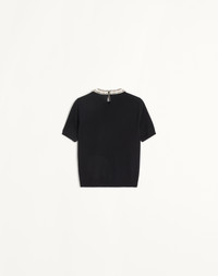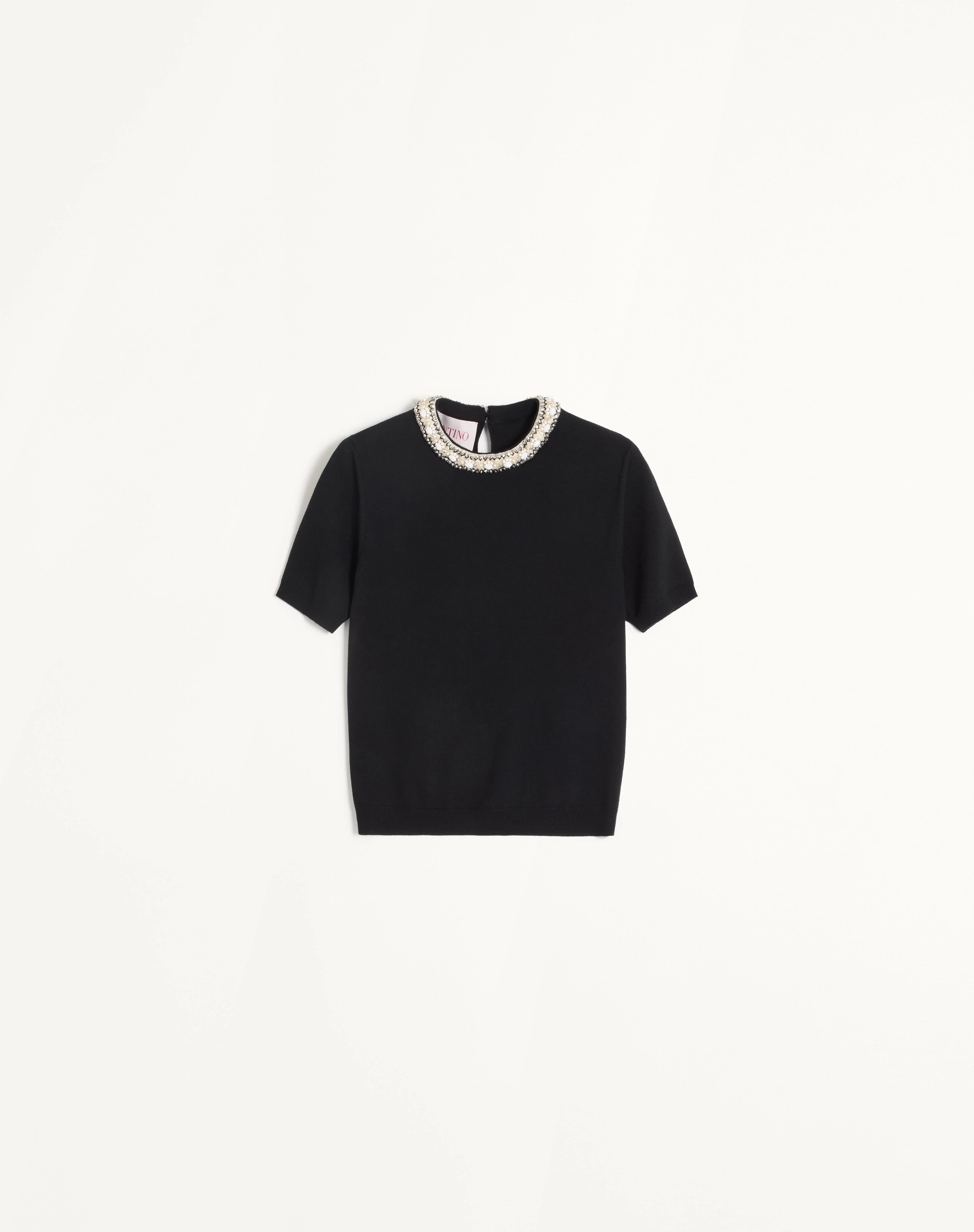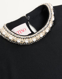Embroidered Wool Sweater - Stone and micro element embroidery on neckline - Rear closure with mother-of-pearl teardrop - Wool (100% Virgin Wool) - Length: 56 cm / 22 in. from the shoulders in an Italian size S - Sleeve length: 40 cm / 15.7 in. from the center back in an Italian size S - The model is 176 cm / 5'9" tall and wears an Italian size S - Made in Italy The look of the model is completed by a Valentino Garavani Vain Bag and Valentino Garavani Bowow Shoes. Product code: 6B3KC63I96A_0NO