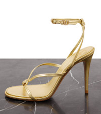 Product Details - Upper: leather, rubber - Lining: leather - Sole: leather insole, rubber sole - Toe shape: round open toe - Made in Italy - Includes: shoe box, dust bags - Designer color name: Gold/Crystal - Closure: buckle-fastening ankle strap - Item number: P00969203 Size & Fit - True to size - Best fit for narrow feet - European sizes - 10,5cm-4" heel (size EU 38)