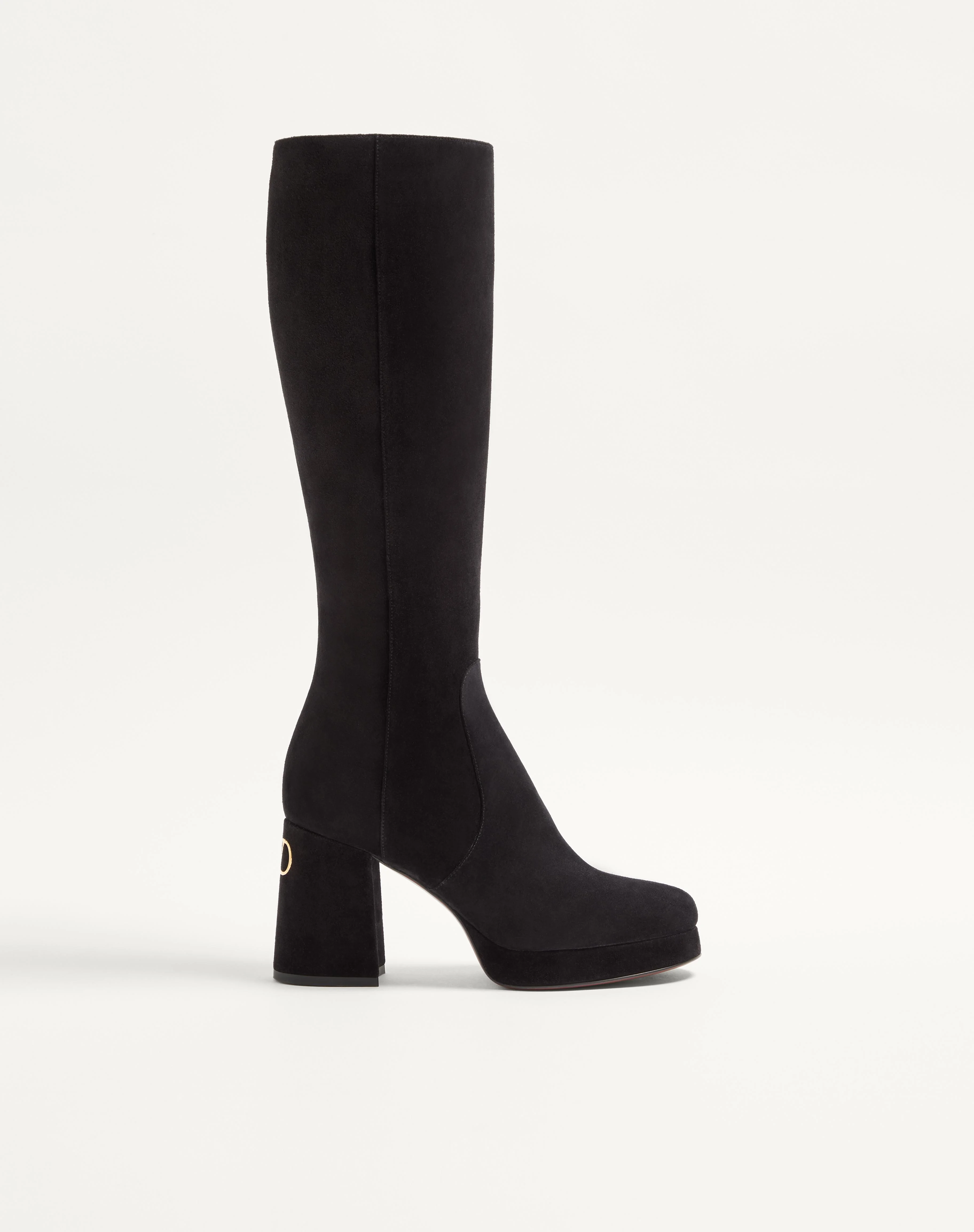 Valentino Garavani Fawcette platform boot in crust leather - VLogo Signature detail with antique brass-effect finish - Platform and block heel wrapped in crust leather - Side zipper closure - Heel height: 90 mm /3.5 in. with 20 mm /0.8 in. platform - Shaft height: 39 cm /15 in. in an Italian size 37 - Made in Italy Product code: 7W0S0NG8DHU_0NO
