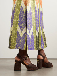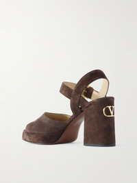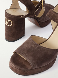 Valentino Garavani's sandals are made from suede with minimal detailing, other than the 'VLogo' hardware on the back. They have platform soles with 95mm heels and fasten with thick ankle straps. Wear yours with faded denim and a ruffled top. Size & Fit - Fits true to size, take your normal size - Italian sizing Details & Care - Heel measures approximately 95mm/ 4 inches - Chocolate suede - Buckle-fastening ankle strap