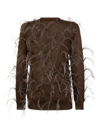 feather-embellished cardigan Highlights - Brown - Feather detailing - V-neck - Button fastening - Long sleeves - Ribbed hem Made in Italy Composition Turkey Feather 100%, Viscose 81%, Metallic Fibre 19% Washing instructions Read Manufacturer Guidelines