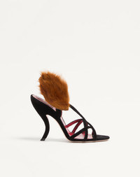 Valentino Garavani Fetishique Velvet Sandal - Leaf detail in lamb fur - VLogo Signature detail in antique-effect brass finish - Strap with elastic insert - Comma heel - Heel height: 105 mm / 4.1 in. - Made in Italy Product code: 7W0S0MZ1DKG_K17