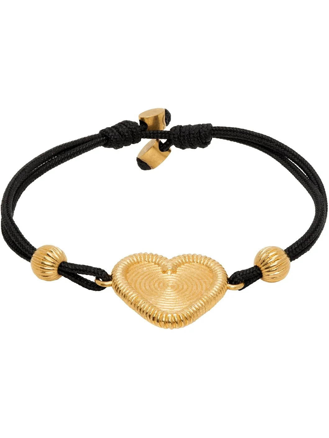 Waxed cotton cord bracelet in black. · Hammered graphic charm at face · Pull-through fastening · D4" Supplier color: Black Cotton, metal. Made in Italy 251807F020007