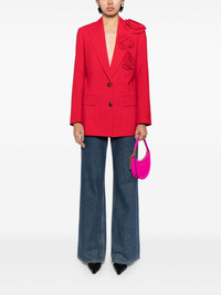 floral applique v-neck blazer Highlights - Red - Cotton blend - Crepe texture - Floral applique - V-neck - Notched lapels - Button fastening - Two side flap pockets - Long sleeves - Straight hem Made in Italy Composition Outer: Polyester 53%, Virgin Wool 43%, Elastane 4% Inner: Polyester 50%, Cotton 50% SIZE & FIT Model measurements Height 5 ft 10 in(1.77 m) Bust/Chest 31.49 in(80 cm) Hips 35.43 in(90 cm) Waist 25.19 in(64 cm) FittingInformation Designed for a slim fit that sits just away from the body offering a close yet comfortable fit The adjustable drawstring means that you can adjust this piece’s fit to suit your comfort and preference Made from a midweight stretch fabric, this piece offers elasticity and flexibility when worn This piece fits true to size – take your usual size