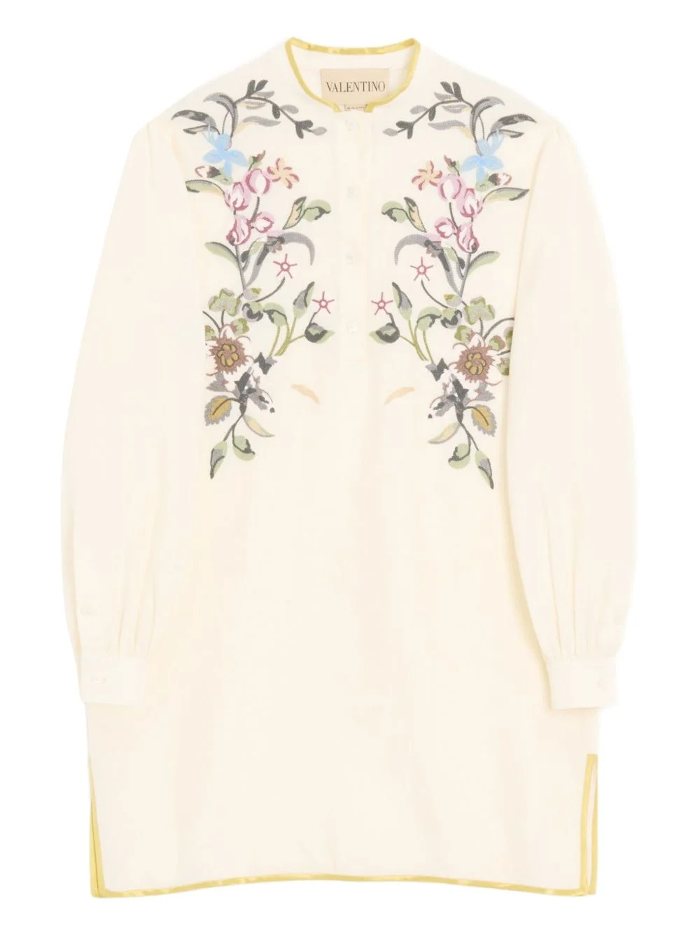 floral-embroidered linen mini dress Highlights - Valentino dress - White - Floral thread embroidery - Side slits - Front button closure - Long sleeves - Trim detail - The full look includes valentino garavani accessories. Made in Italy Composition Outer: Linen/Flax 100% Lining: Cotton 100% Washing instructions Read Manufacturer Guidelines