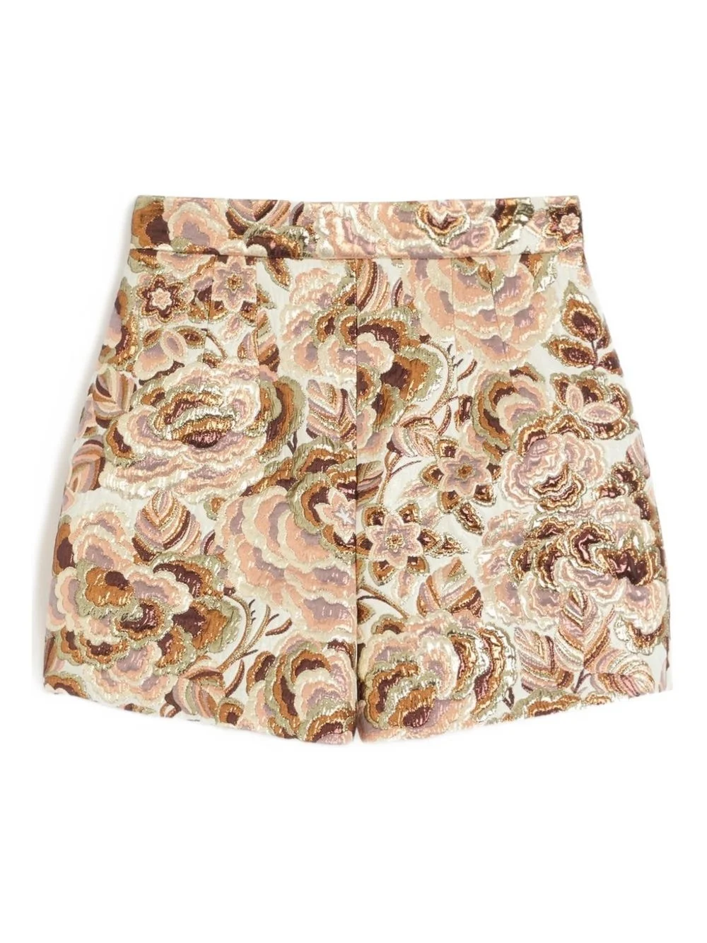 floral-jacquard shorts Highlights - Sand beige/multicolour - Metallic threading - Patterned jacquard - Concealed front fastening Made in Italy Composition Lining: Silk 100% Outer: Wool 34%, Polyester 29%, Acrylic 20%, Metallic Fibre 17%