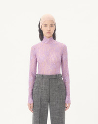 Fitted Bodysuit in Floral Lace - High neck - Rear zipper closure - Floral Lace (90% Polyamide, 10% Elastane) - Length: 75 cm / 29.5 in. from the shoulders in an Italian size S - The model is 176 cm / 5'9" tall and wears an Italian size S - Made in Italy The look of the model is completed by a Valentino Garavani Minaumorphe Bag and Valentino Garavani Shoes. Product code: 7B0MR01Z9TS_R3H