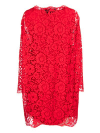 floral-lace mini dress Highlights - Red - Floral lace applique - Crew neck - Long sleeves - Scallop hem - Thigh-length Made in Italy Composition Viscose 43%, Cotton 34%, Polyamide 23%