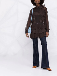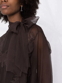 floral-lace silk blouse Valentino Garavani pairs lace panelling with semi-sheer silk to create a sophisticated and romantic blouse. In a tonal colourway, it adds to the garments refined feel. Highlights - Valentino ready to wear - Brown - Silk - Floral-lace detailing - Pussy-bow collar - Semi-sheer construction - Long sleeves - Layered details Made in Italy Composition Outer: Silk 100%, Cotton 65%, Polyamide 35% Lining: Polyamide 100% SIZE & FIT Model measurements Height 5 ft 10 in(1.78 m) Bust/Chest 31.49 in(80 cm) Hips 37 in(94 cm) Waist 23.62 in(60 cm) Washing instructions Read Manufacturer Guidelines