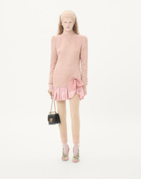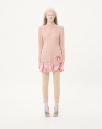 Floral Matelasse short dress with organza bow - Ruffle at the hem in satin - Shoulder pads - Rear zipper and hook-and-eye closure - Matelasse Papier Floral (52% Wool, 33% Silk, 15% Polyamide) - Habotai lining (100% Silk) - Length: 87 cm / 34.3 in. from the shoulders in an Italian size 40 - The model is 176 cm / 5'9" tall and wears an Italian size 40 - Made in Italy The look of the model is completed by a Valentino Garavani Vain Bag and Valentino Garavani Dans Le Foyer Shoes. Product code: 7B0VAGF69TB_R10