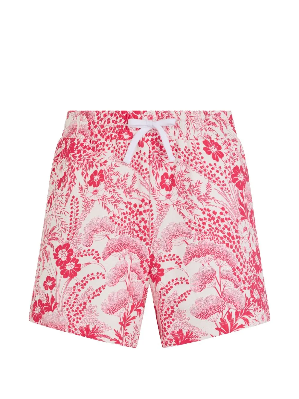 floral shorts Highlights - White and pink - Floral print - Drawstring waist - Elasticated waistband - Side seam pockets - Rear patch pocket Imported Composition Fabric 100% Washing instructions Read Manufacturer Guidelines