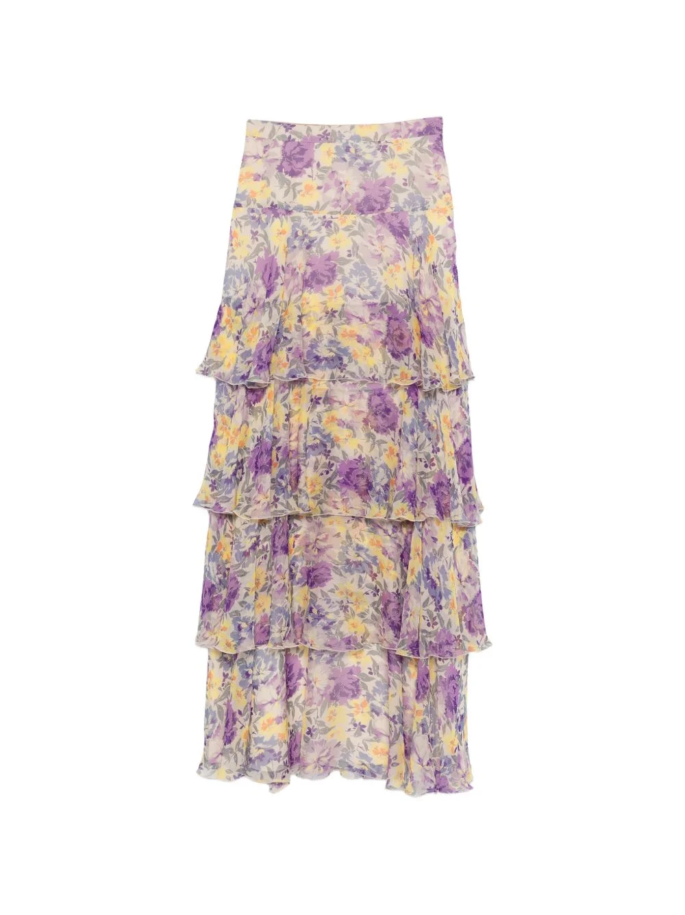 floral tiered maxi skirt Highlights - Purple and beige - Floral print - Tiered design Made in Italy Composition Outer: Silk 100% Lining: Silk 91%, Elastane 9% Washing instructions Dry Clean Only