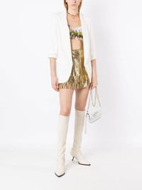 fringed sequin mini skirt Highlights - Valentino ready to wear - Gold-tone - Sequin design - Fringe detailing - High-waisted - Thigh-high Made in Italy Composition Lining: Viscose 91%, Spandex/Elastane 9% Outer: Polyester 100%, Polyamide 100% SIZE & FIT Model measurements Height 5 ft 10 in(1.77 m) Bust/Chest 32.28 in(82 cm) Hips 36.61 in(93 cm) Waist 25.19 in(64 cm) FittingInformation This piece fits true to size. We recommend you get your regular size Cut for a slim fit Made with a mid-weight non-stretch fabric Washing instructions Read Manufacturer Guidelines