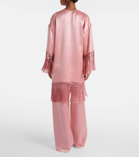Product Details - Material: 100% silk - Care instructions: dry clean - Made in Italy - Designer color name: Geranium - Trim: 100% viscose - Closure: hook fastening - Item number: P01006700 Size & Fit - True to size - Dropped shoulders - Designed for a loose fit - Non-stretchy fabric - The model seen in the picture is 178cm-5'10" and wearing a size IT 40