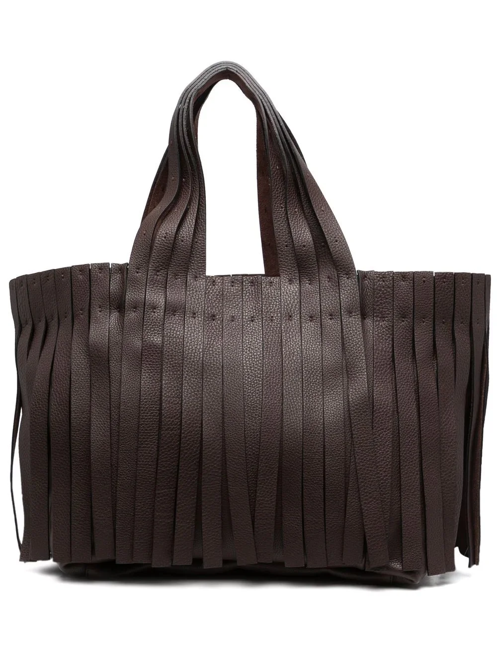 fringed tote bag To fringe or not to fringe. Haircuts aside, this Valentino Garavani tote bag will make the decision for you. You're going to be mesmerised by this roomy accessory. Made in Italy Composition Outer: Leather 100% SIZE & FIT Model measurements Height 5 ft 10 in(1.78 m) Bust/Chest 31.49 in(80 cm) Hips 36.22 in(92 cm) Waist 25.59 in(65 cm) Measurement DEPTH 7.87 in(20 cm) HANDLE 8.66 in(22 cm) HEIGHT 13.77 in(35 cm) WIDTH 22.83 in(58 cm)