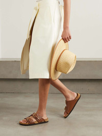 EDITORS'NOTES Valentino Garavani's 'Fussfriend' slides might be designed for comfort but they're beautifully made and elegant enough for many occasions. They've been crafted in Italy from supple leather and set on molded cork soles. Look closely and you'll spot the signature 'VLOGO' hardware. SIZE & FIT - Fits true to size, take your normal size - Italian sizing DETAILS & CARE - Slight heel - Brown leather (Calf) - Slip on