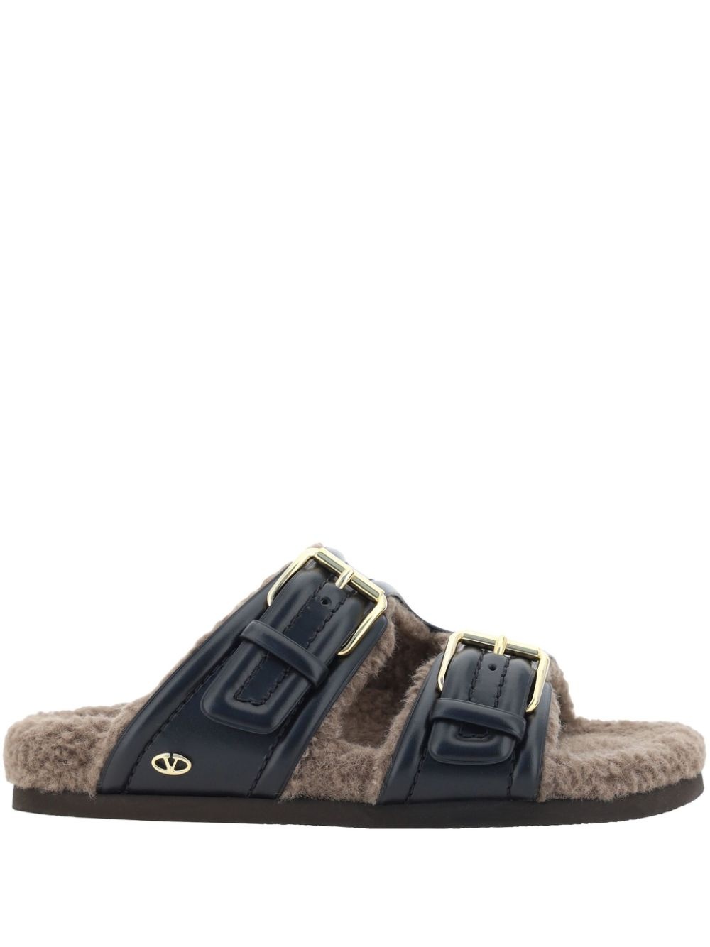 Fussfriend slides Highlights - Black - Buckle fastening - Shearling lining - Rubber sole - Vlogo signature Made in Italy Composition Outer: Calf Leather 100% Lining: Sheep Skin/Shearling 100% Sole: Rubber 100%