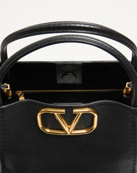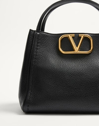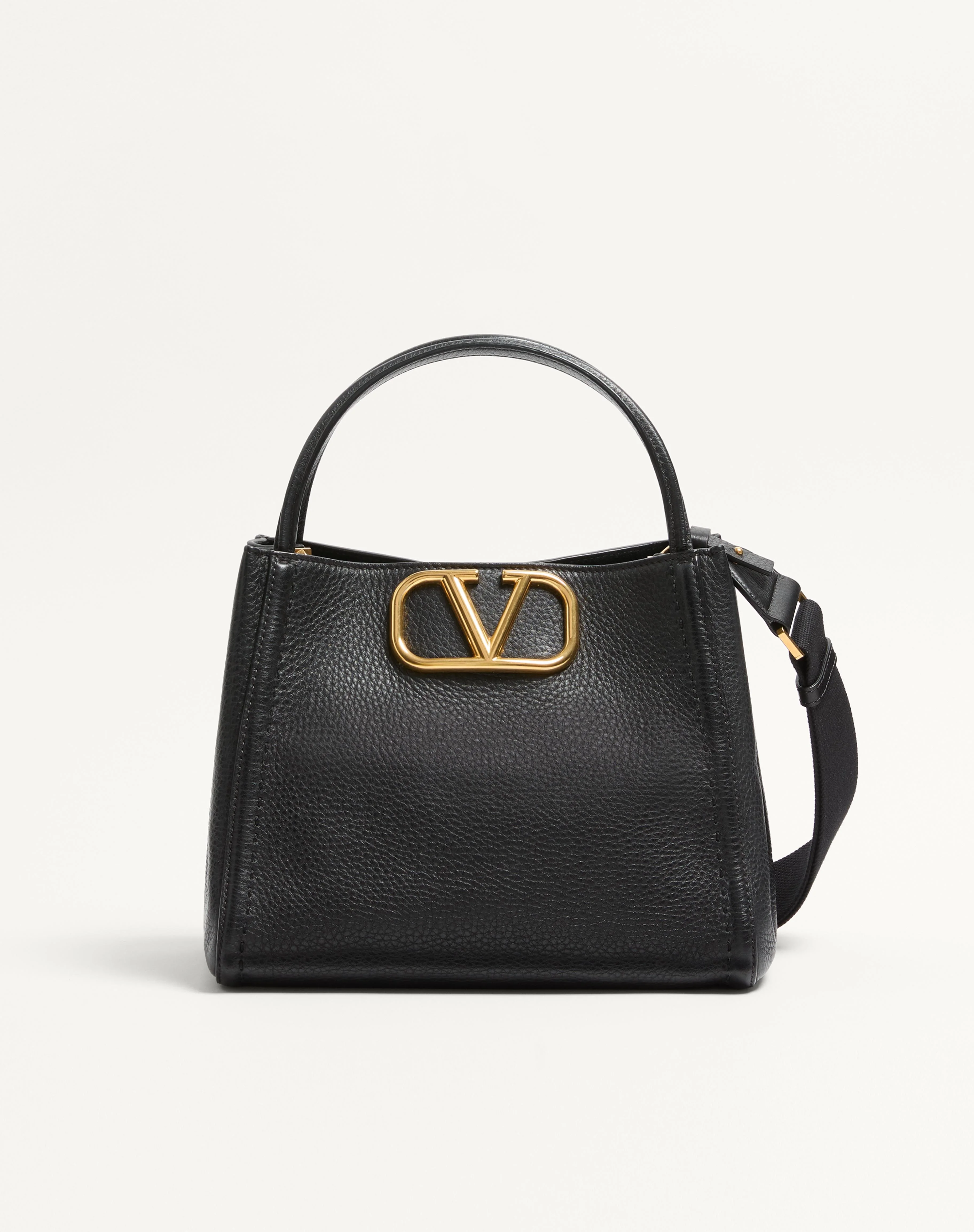 Valentino Garavani Alltime medium handbag in grainy calfskin with metallic VLogo Signature element. The bag can be worn on the shoulder/crossbody thanks to the shoulder straps or carried by hand thanks to the leather handles. - Antique brass-finish hardware - Magnetic closure - Adjustable and detachable ribbon shoulder strap - Adjustable and detachable leather shoulder strap - Protective feet - Interior: one zippered pocket - Leather shoulder strap drop length: 50 cm / 19.7 in. - Dimensions: W26xH21xD17 cm / W10.2xH8.3xD6.7 in. - Made in Italy Product code: 5W2B0Q18IMZ_0NO