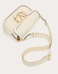 Valentino Garavani Alltime woven leather shoulder bag with metallic VLogo Signature element. The bag can be worn on the shoulder/cross-body or handheld thanks to the removable handle and removable fabric shoulder strap. - Gold-finish hardware - Magnetic closure - Removable leather handle - Adjustable and detachable ribbon shoulder strap - Nappa leather lining. Interior: one slip pocket - Shoulder strap drop length: 53 cm / 20.8 in. - Dimensions: W23.5xH16xD8 cm / W9.2xH7xD3.1 in. - Made in Italy Product code: 5W2B0N62IUG_098