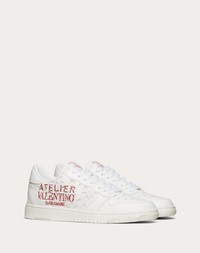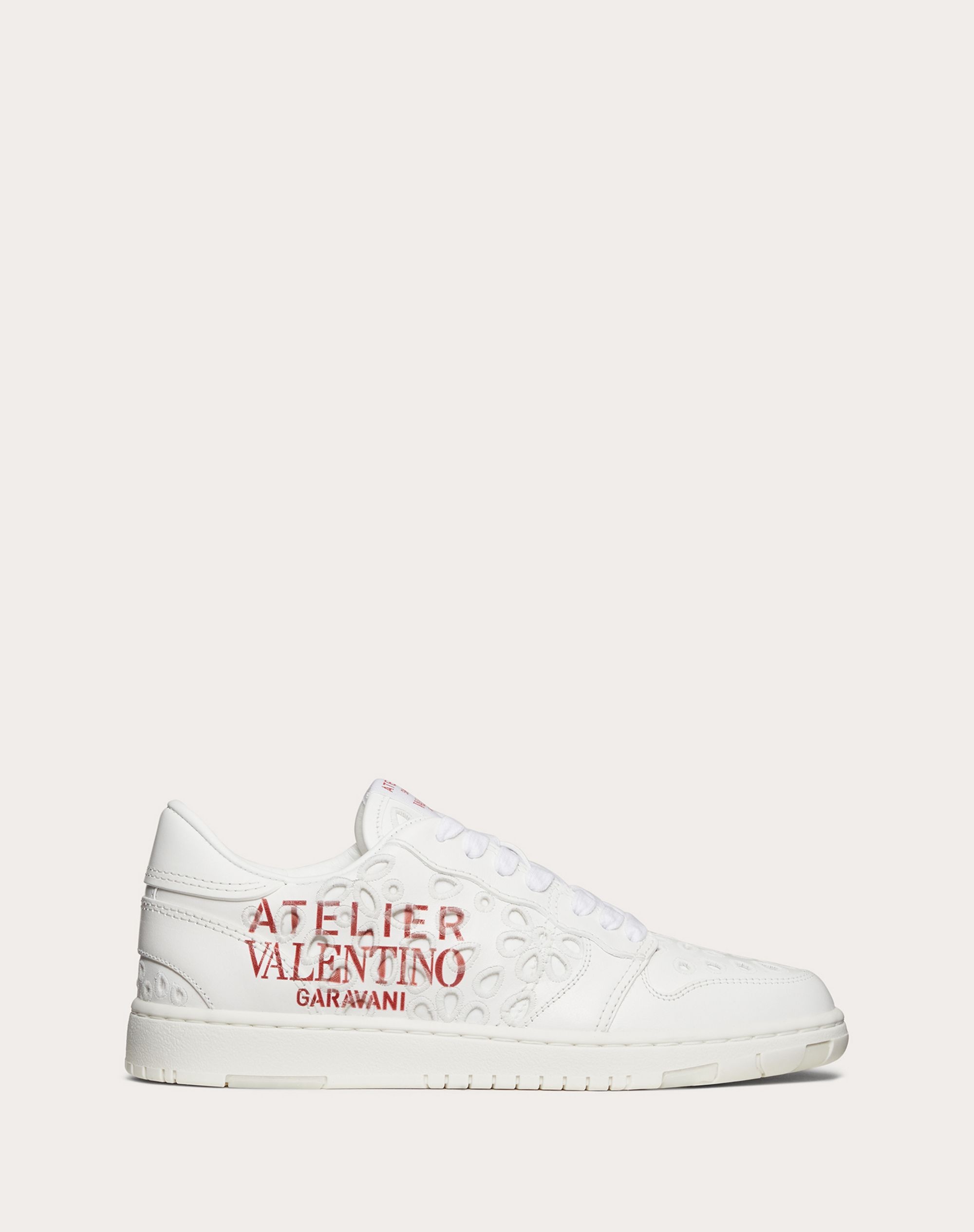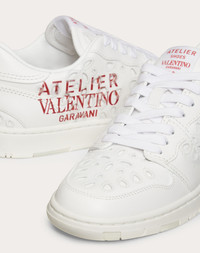 Valentino Garavani Atelier Shoes 08 San Gallo Edition Low-Top Sneaker in calfskin with San Gallo embroidery. - Valentino Garavani Atelier print - Atelier Shoes Valentino Garavani 08 screen-printed logo on the tongue - Rubber tread with camouflage motif with embossed Atelier Valentino Garavani logo - Made in Italy Product Code: XW2S0CQ6MKGR81