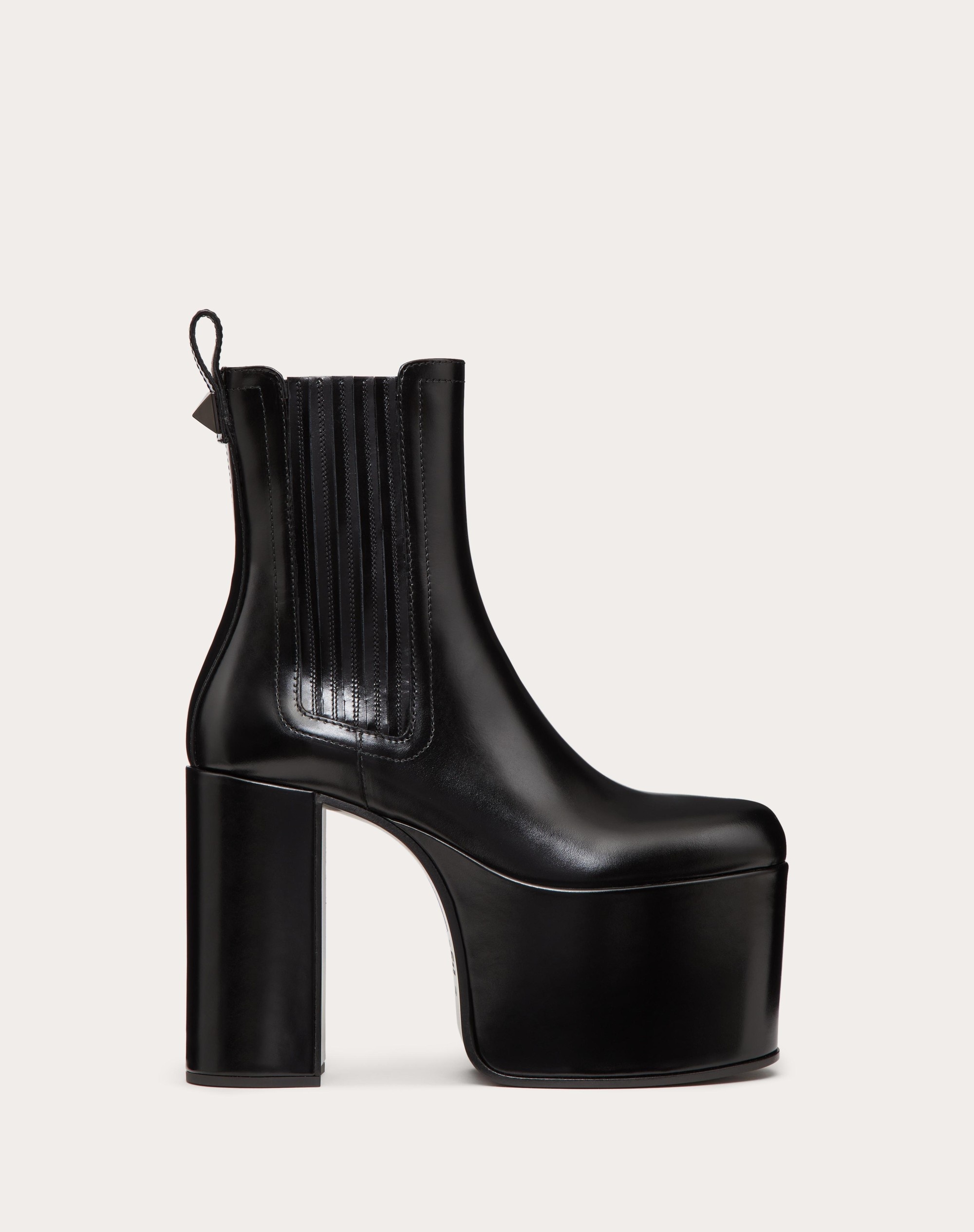 Valentino Garavani Club women's platform ankle boot in calfskin leather - Leather pull tab on rear with 18x18 mm tone-on-tone-finish maxi stud detail - Tone-on-tone leather-covered side elastic inserts - Heel height: 125mm / 4.9 in. with 80mm / 3.15 in. platform - Shaft height: 17 cm / 6.7 in. in size 37 IT - Women's ankle boot - Made in Italy Product code: WS0FR0SVS_0NO