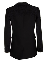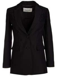 single-breasted blazer Highlights - Black - Virgin wool-silk blend - Front button fastening - Long sleeves - Two side flap pockets - Internal logo patch Made in Italy Composition Virgin Wool 65%, Silk 35%