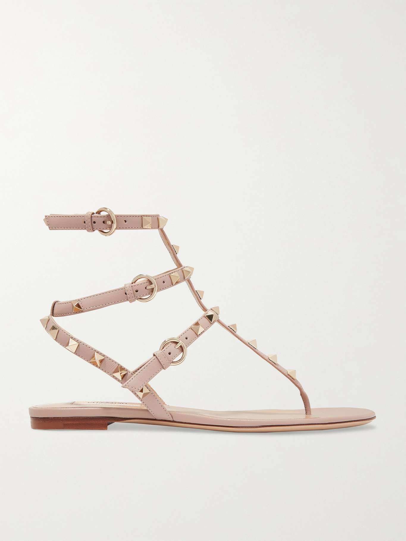 EDITORS'NOTES Valentino Garavani's sandals have been made in Italy from soft blush leather in a gladiator-inspired silhouette. They're embellished with the house's signature hand-applied 'Rockstuds' which have been galvanized to keep their shine - just make sure your pedicure is equally glossy.<br><br>Shown here with: [Zimmermann Shirt id1145288], [Rebecca Vallance Shorts id1151007], [Laura Lombardi Bracelet id1129356], [Loewe Shoulder bag id1135250]. SIZE & FIT - Fits small to size, take a half size larger than normal - Italian sizing DETAILS & CARE - Heel measures approximately 10mm/ 0.5 inches - Blush leather (Calf) - Buckle-fastening straps - Made in Italy Small to size. See Size & Fit notes.