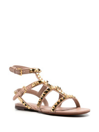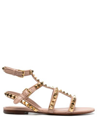 Rockstud No Limit caged sandals from VALENTINO GARAVANI featuring rose pink, calf leather, gold-tone Rockstud embellishment, side buckle fastening, open toe and flat sole. Made in Italy Composition outer: Calf Leather 100%,Brass 100% sole: Calf Leather 100% lining: Calf Leather 100% Product measurements for size: 37 (IT) Circumference: 25 cm (9.8 in) Heel: 1.5 cm (0.6 in) Height: 12 cm (4.7 in)