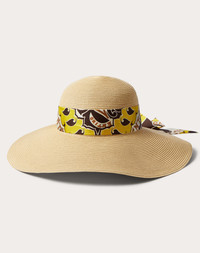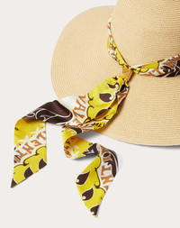 Valentino Garavani VLogo Chain hat in textile paper - Manifesto Bandana print silk strap - Antique brass-finish metal stud detail - Grosgrain inner band with Valentino logo print - Available in sizes XS(55)-S(56)-M(57)-L(58) - Made in Italy Product code: WHEA89UJG_UJZ