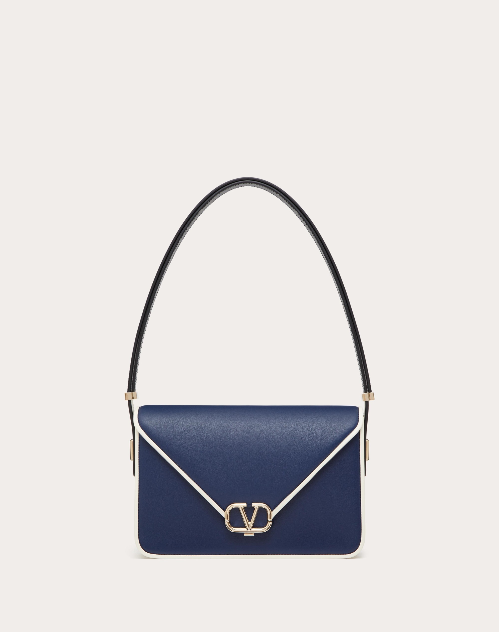 Valentino Garavani shoulder Letter Bag in two-tone smooth calfskin with VLogo Signature closure.The bag can be worn on the shoulder/crossbody thanks to the adjustable shoulder strap. - Platinum-finish closure and hardware - Metal snap closure - Adjustable leather shoulder strap - Nappa leather lining. - Nappa leather lining. Interior: one slip pocket Shoulder strap drop length: min. 24.5 cm to max. 52 cm / min. 9.6 in. to max. 20.5 in. - Dimensions: W24xH15.5xD7 / W9.4xH6.1x2.7 in. Made in Italy Product code: WB0M50UIZ_MQJ