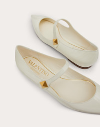 Valentino Garavani Tiptoe Patent Leather Ballet Flats - Adjustable elastic strap around the instep with maxi stud detail - Antique brass-finish maxi stud 15x15 mm / 0.6x0.6 in. - Heel height: 5 mm / 0.25 in. - Made in Italy Product code: WS0GC3ERU_098