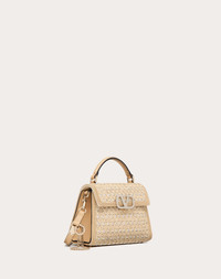 Valentino Garavani VSLING mini handbag with synthetic raffia embroidery and rhinestones. VLogo Signature closure covered with Swarovski® crystals. Equipped with a handle and an extendable shoulder strap, the bag can be handheld or worn crossbody/over the shoulder. - Platinum-finish hardware - Magnetic closure with logo - Leather shoulder strap with adjustable chain - Protective feet - Canvas lining. Interior: open slip pocket Shoulder strap drop length: min. 45 cm to max. 59 cm / min. 17.7 in. to max. 23.2 in. - Dimensions: W19xH13xD9 cm / W7.4xH5.1xD3.5 in. - Made in Italy Product code: 5W2B0G97MRA_7AN