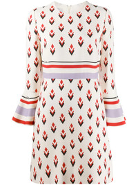 geometric-print dress Presented in a pretty palette, this dress will brighten up your wardrobe. Valentino Garavani's dress is decorated in a geometric pattern and has charming flared sleeves. It's a versatile design that can be dressed up or down, depending on your mood. Highlights - Valentino ready to wear - White/blue/orange - Geometric print - Round neck - Rear zip fastening - Long sleeves Made in Italy Composition Outer: Viscose 65%, Silk 35% Lining: Viscose 91%, Spandex/Elastane 9% SIZE & FIT Model measurements Height 5 ft 10 in(1.78 m) Bust/Chest 31.49 in(80 cm) Hips 36.22 in(92 cm) Waist 25.59 in(65 cm) FittingInformation This piece fits true to size. We recommend you get your regular size Designed for a close fit at the bust, waist and hips Made with a mid-weight fabric