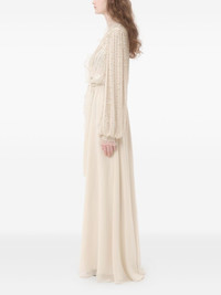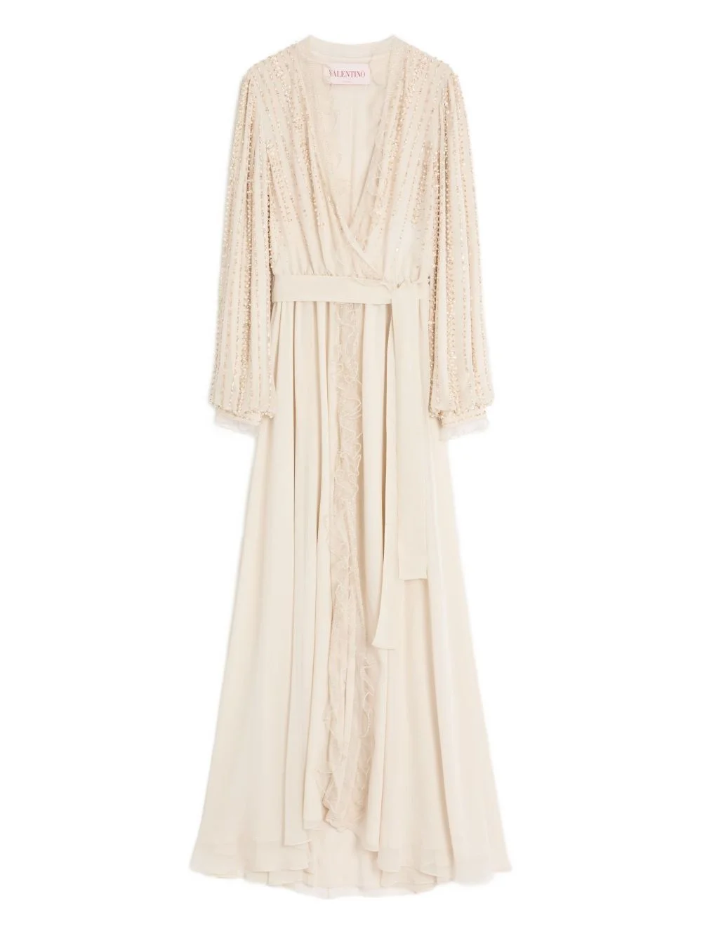 georgette long dress Highlights - Valentino ready to wear - Light beige - Belted waist - Sequin embellishment - Bead embellishment - The model is 176 cm / 5'9'' tall and wears an italian size 40 Made in Italy Composition Outer: Silk 100% Lining: Silk 91%, Elastane 9% Washing instructions Read Manufacturer Guidelines