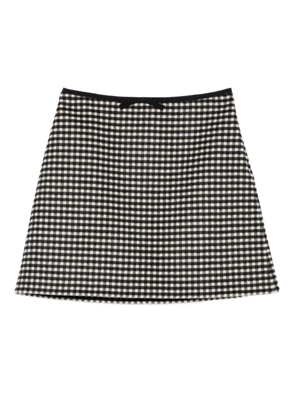 gingham mini skirt Highlights - Black and white - Gingham pattern - A-line shape - Bow detail Made in Italy Composition Virgin Wool 97%, Cotton 56%, Viscose 44%, Cashmere 3% SIZE & FIT Model measurements Height 5 ft 10 in(1.77 m) Bust/Chest 33.07 in(84 cm) Hips 37 in(94 cm) Waist 24.8 in(63 cm) Washing instructions Dry Clean Only