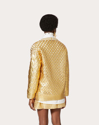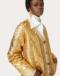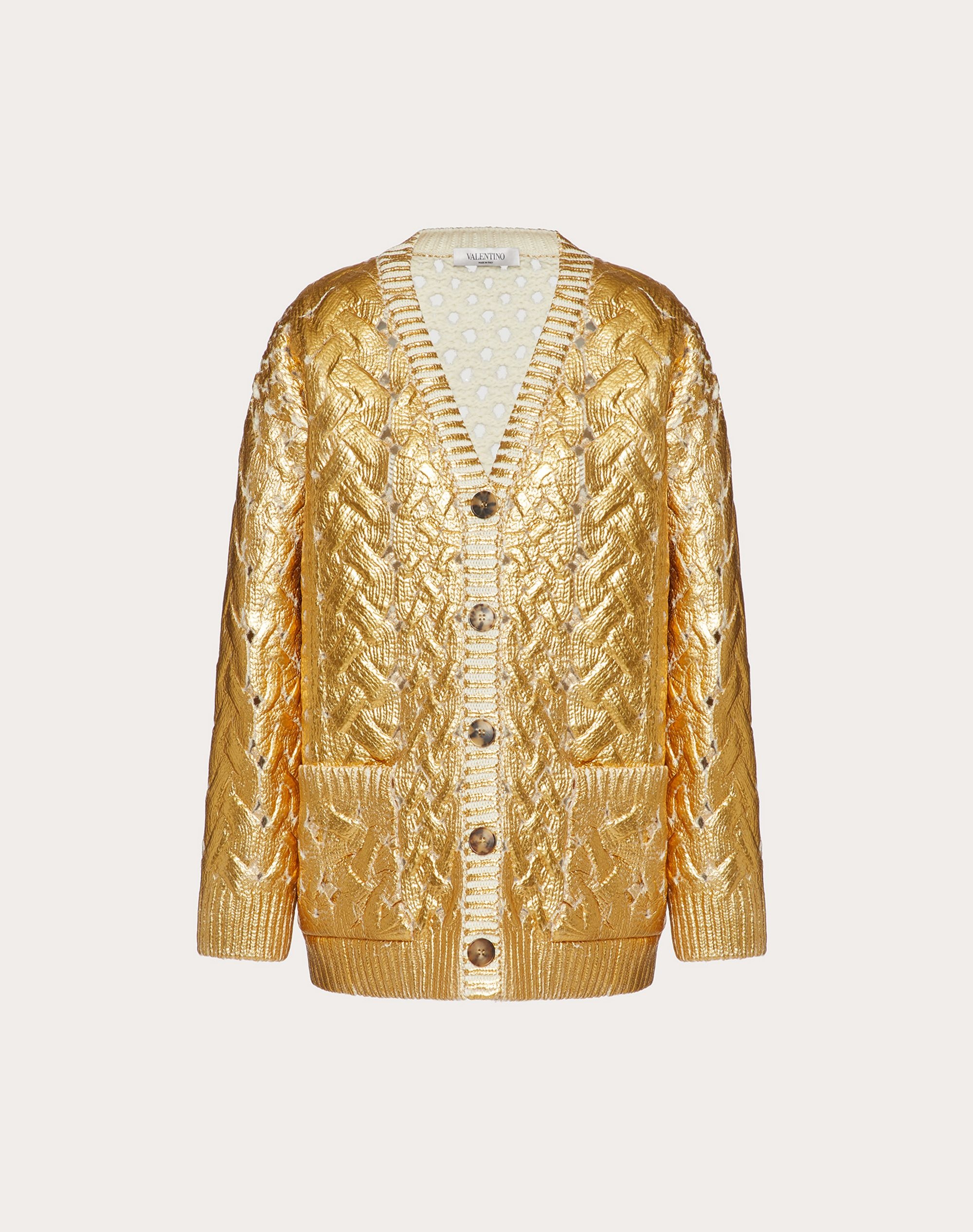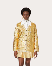 Cardigan in gold wool. - Laminated gold - Front button fastening - Wool (100% Virgin Wool) - Unlined - Length from shoulders: 72 cm / 28.3 in. for Italian size S - The model is 176 cm / 5’9” tall and wears an Italian size S - Made in Italy Product Code: WB0KA02X6SPL01
