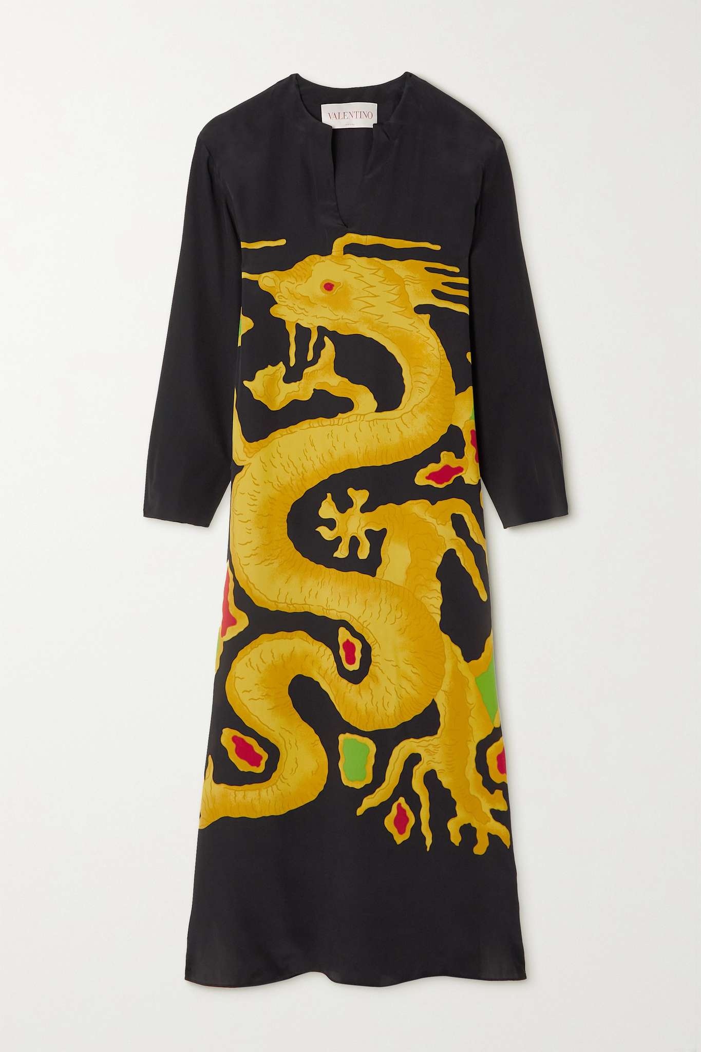 EDITORS'NOTES Valentino's maxi dress is printed with a vibrant dragon design that first emerged in the house's '69 couture collection and later resurfaced as a limited-edition for Spring '01 – different versions of the style have been worn by Naomi Campbell and Claire Danes. This one is made from fluid silk-georgette in an elegant, kaftan-inspired silhouette. Wear yours with gold jewelry. SIZE & FIT - Fits true to size, take your normal size - Designed for a draped silhouette, cut to be worn very loose - Lightweight, non-stretchy fabric - Model is 177cm/ 5'10" and is wearing an IT 40 DETAILS & CARE - Multicolored silk-georgette - Slips on - 100% silk - Dry clean