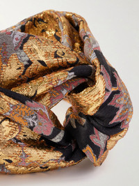 Valentino Garavani's headband is flecked with metallic threads that'll catch light as you move. It's made with brocade with a floral pattern and twisted for volume.