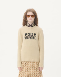Chez Valentino Sweater - Embroidered heart details - Wool (100% Virgin Wool) - Length: 64 cm / 25.2 in. from the shoulders in an Italian size S - The model is 176 cm / 5'9" tall and wears an Italian size S - Made in Italy The look of the model is completed by a Valentino Garavani Vain Bag and Valentino Garavani Valet Du Roi Shoes. Product code: 7B3KC66S9JL_R8E